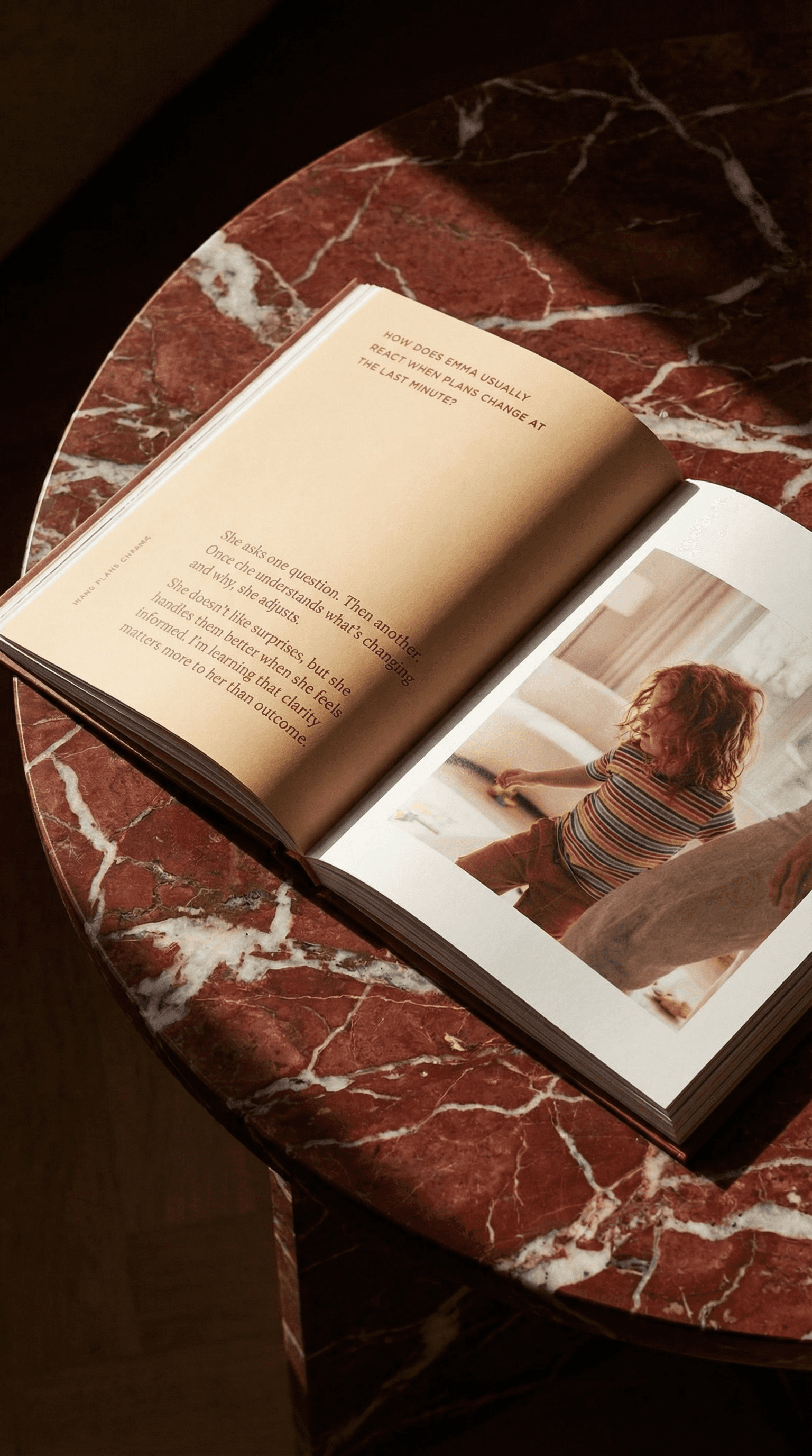 Prompts are short, specific to you, and human—designed to surface moments you’d otherwise forget, not to demand reflection or writing. Most responses take under a minute. We aim to tailor prompts to your family and the season you're in, with the goal of creating a narrative-rich book that is worth keeping.